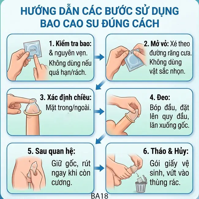 - Kiểm tra kỹ bcs trước khi dùng: Còn hạn sử dụng, nguyên vẹn không bị thủng, rách.