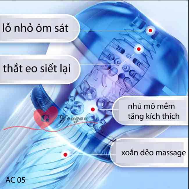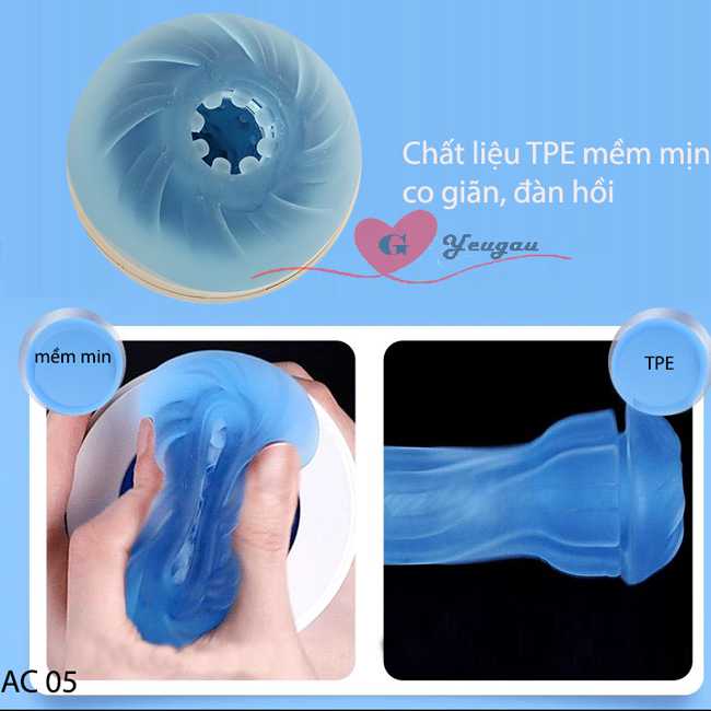 Đồ chơi người lớn nam được thiết kế ở thân có thể xoắn, bú hút dương vật cực sướng. Khi thủ dâm bạn sẽ dùng tay xoay dụng cụ tình dục để nó ôm thằng nhỏ. Anh em lên đỉnh dễ dàng như đang quan hệ thật.