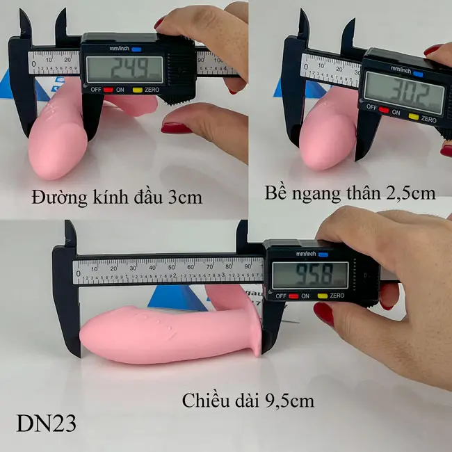 Tâm lý chung của chị em phụ nữ mới dùng cu giả và các cô gái tuổi teen đều sợ đau rát khi thủ dâm với dương vật silicon. Chính vì vậy sản phẩm này rất phù hợp, đơn giản là nó có size mini. Với chiều dài 9,5cm bề ngang đầu khấc là 3cm còn trên thân chỉ có 2,5cm. Kích thước này sẽ không lo làm rộng cô bé hay đau rát vùng kín.