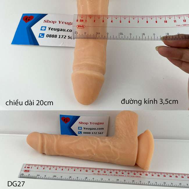 Cu giả tự thụt có chiều dài 20cm, đường kính 3,5cm phù hợp với âm hộ người Việt Nam. Nếu bạn muốn làm tình cùng con ciu mini thì đừng bỏ qua mẫu dương vật giả hình trái chuối thủy tinh ngụy trang hoàn hảo.