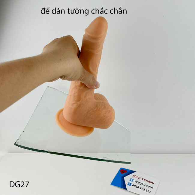 Sản phẩm dương vật giả tự thụt được thiết kế giống hệt hàng thật. Nó có đầu khấc trơn láng, 2 hòn dái to tròn. Trên thân có các đường gân tăng kích thích bên trong âm đạo khi chị em tự sướng.