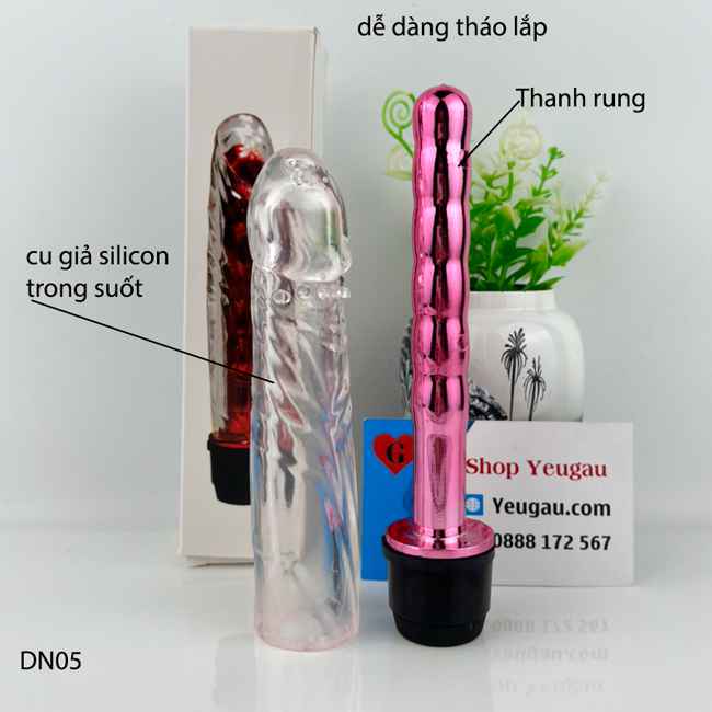 Mẫu đồ chơi tình dục được thiết kế 1 thanh rung kiểu lượn sóng bên trong. Bên ngoài là cu giả silicon trong suốt. Bạn có thể dễ dàng tháo lắp 2 bộ phận này. Thanh rung có đường kính chỉ 1,5cm, thủ dâm được cả hậu môn, kích thích nhũ hoa,… Đúng là sex toy 2 in 1 đa năng.