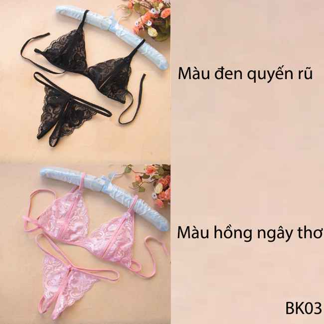 Đồ lót xuyên thấu là bí quyết không thể thiếu nếu muốn giữ lửa chốn phòng the. Đây cũng là cách để phái đẹp luôn quyến rũ, khêu gợi chàng. Với set đồ lót sexy, không đáy hở đầu ti này hứa hẹn đem đến những đêm “yêu” cuồng nhiệt. Chất liệu ren mềm mại cùng thiết kế lọt khe, dây buộc phù hợp với nhiều size cơ thể. Hãy rước ngay bộ đồ nội y này nửa kia luôn si mê đến từng phút giây.
