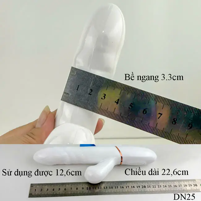 cu giả tự thụt có chiều dài 22,6 cm (có thể sử dụng sâu trong âm đạo khoảng 12,6cm). Bề ngang 3,3cm. Kích thước này được đánh giá là size trung bình, phù hợp với vùng kín nữ giới Việt Nam. Nó không quá to cũng không phải nhỏ.