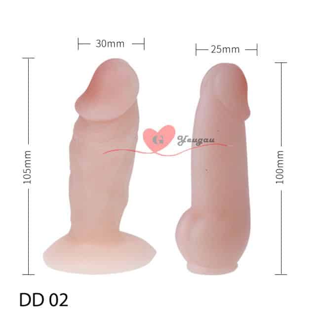 Dụng cụ phòng the này có 2 con cu giả size nhỏ. 1 chiếc đường kính 3cm, chiều dài 10,5cm. Chiếc còn lại đường kính 2.5cm , dài 10cm. Thấu hiểu được sở thích của đại đa số các bạn les nên nhà sản xuất đã tạo ra với kích thước này.