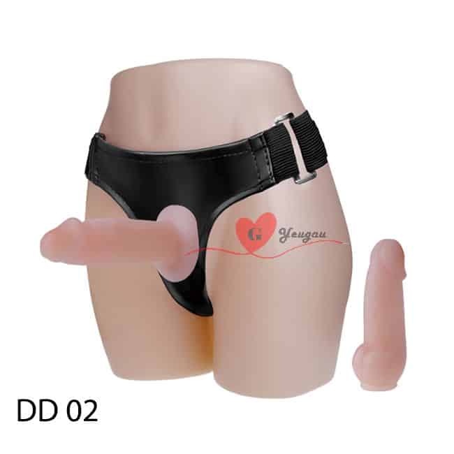 Mẫu sextoy cho les này gồm 2 cu giả được gắn vào dây đeo. Dây đeo chắc chắn, co giãn, điều chỉnh được độ rộng phù hợp với vòng bụng mọi người.