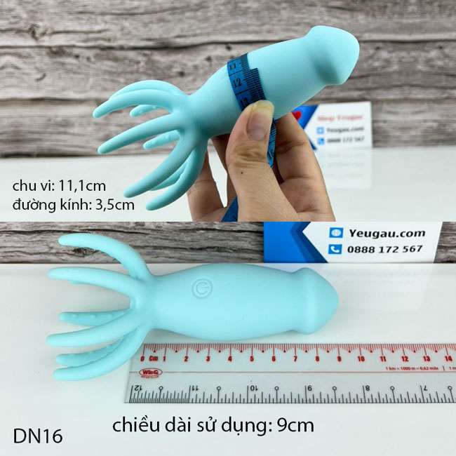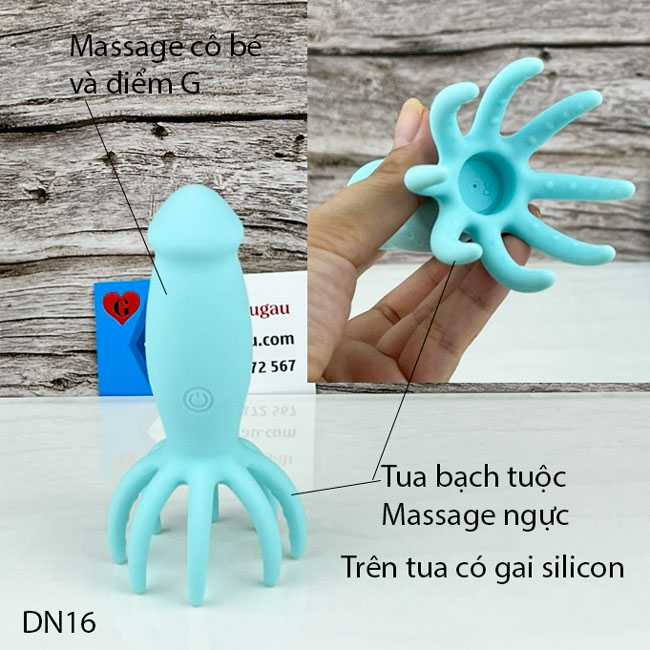 Mẫu dildos này thiết kế gồm 2 phần. Phần cu giả đảm nhiệm vị trí kích thích bên trong âm đạo và điểm G. Đầu còn lại với hình dạng tua bạch tuộc. Mỗi khi sử dụng nó sẽ ôm trọn đầu ti. Trên xúc tu có các gai silicon massage tăng hưng phấn nhũ hoa cực phê. Đây có thể làm đồ chơi thủ dâm cho nữ hay dụng cụ dạo đầu của các cặp đôi.