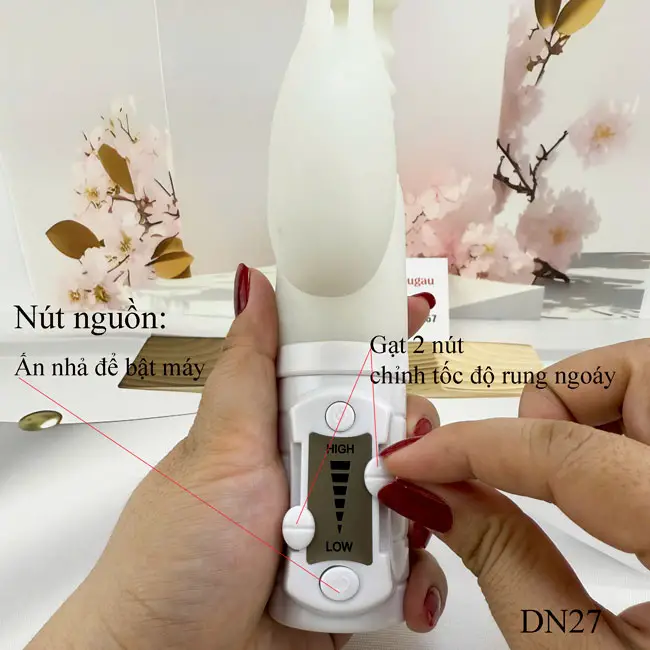 - Gạt 2 nút ở 2 bên để chỉnh tốc độ rung ngoáy.