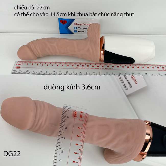 Đồ chơi tự sướng cho nữ có chiều dài tổng là 27cm. Có thể cho vào sâu trong cô bé đến 14,5cm ( khi bật chức năng thụt có thể tăng thêm 2-4cm). Đường kính cu giả là 3,6cm. Kích thước này phù hợp với cơ thể người Việt. Nếu bạn thích siêu phẩm con ciu ngoại to dài ngoại quốc, thì đừng bỏ qua mẫu Lovetoy Sliding Skin 9,5 inch tuột da 2 lớp màu nâu châu phi.