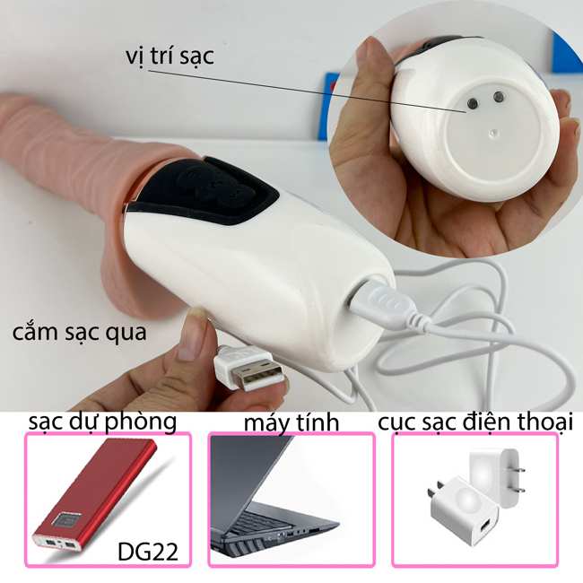 Đồ chơi tình yêu sử dụng nguồn điện pin sạc từ tính hiện đại cổng USB. Đầu USB cắm vào cục sạc điện thoại, sạc dự phòng hoặc máy tính. Chỉ cần cắm điện khoảng 2 tiếng là máy có thể hoạt động liên tục đến 1 giờ.