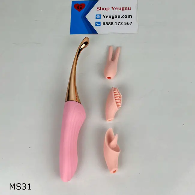 Bộ máy massage kích dục này có 3 đầu phụ khác nhau. Nó sẽ được lắp vào đầu sản phẩm nhằm kích thích khoái cảm tại những điểm nhạy cảm của phụ nữ: Đầu ti, hột le, bú liếm hậu môn.