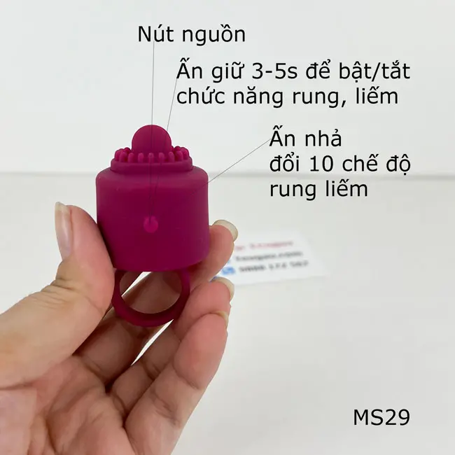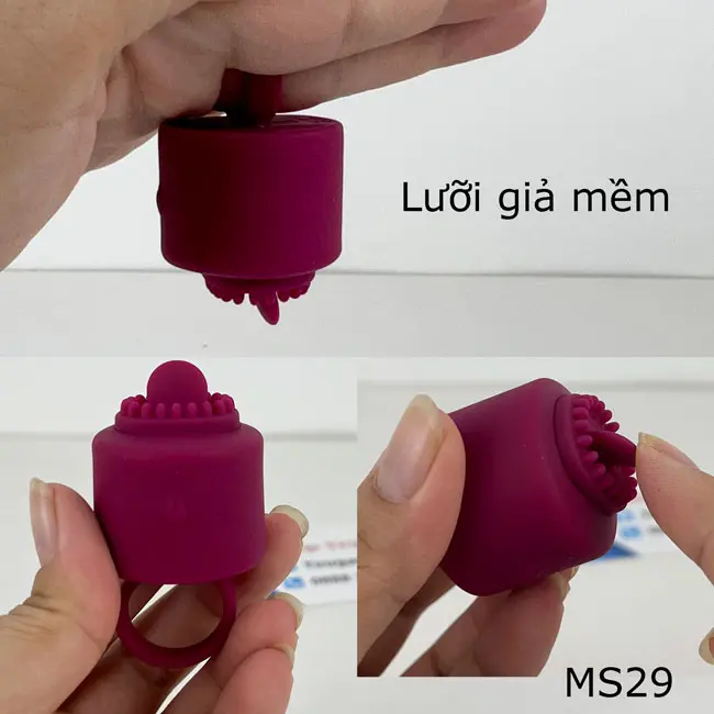 Lưỡi rung này có dạng chiếc nhẫn, dễ dàng đeo lên tay không lo trơn tuột. Bạn có thể sử dụng để bú liếm, mơn trớn hột le hay đầu ti cũng đầy sung sướng. Cảm giác vừa được chăm sóc tỉ mỉ bên trong cô bé, vừa được la liếm bên ngoài thì ai mà chịu được, nước nôi tràn bờ đê là có ngay và luôn nha.