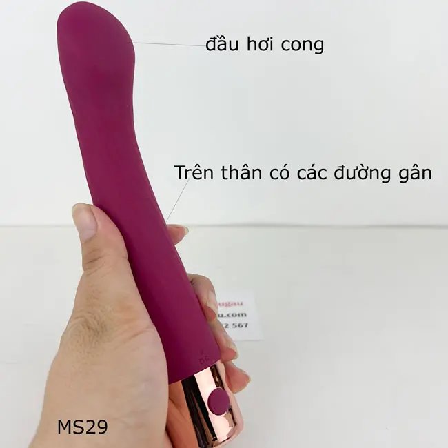 Máy thủ dâm cho nữ này có thể dễ dàng massage sâu tận bên trong âm đạo. Các vết gân trên thân nó giống hệt như đường gân trên con cu. Ngoài ra đầu sextoy hơi cong dễ chạm đến điểm G cực khoái của phái đẹp. Ngoài dùng cho các nàng tự sướng thì cũng rất hữu ích khi cặp đôi dạo đầu tăng hưng phấn chốn phòng the.