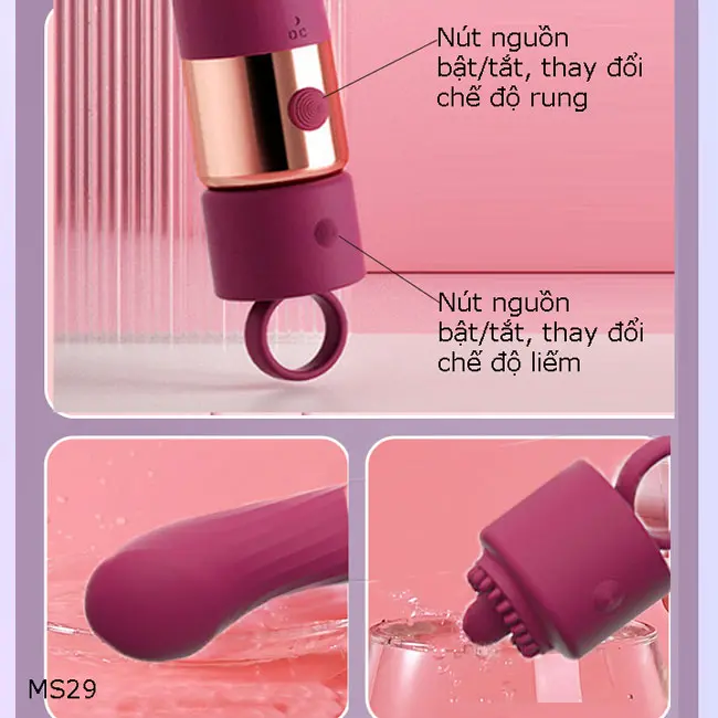 - Ấn giữ 3-5s để bật/tắt chức năng rung liếm