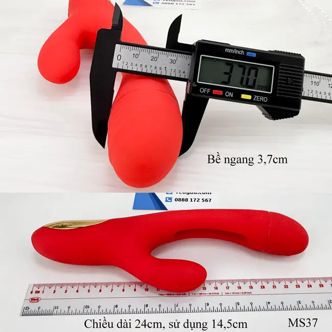Chiếc máy rung kích dục phụ nữ có chiều dài 24cm (sử dụng được 14,5cm cho vào âm đạo), bề ngang nơi to nhất là 3,7cm. Kích thước này được coi là phù hợp với vùng kín phái đẹp Việt Nam.