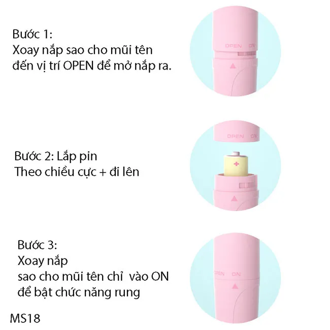 - Xoay nắm đến vị trí On để bật chức năng rung, chỉnh đến Open để tắt và tháo nắp ra.