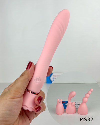 Nhà sản xuất có làm thêm 3 đầu phụ khác nhau có thể lắp vào máy này. Chỉ cần lắp thêm phụ kiện vào là từ mẫu sextoys ban đầu đã biến thành: Đồ chơi hậu môn, máy massage điểm G, dụng cụ kẹp vú, dương vật giả. Như vậy cuộc yêu sẽ thú vị hơn khi kích thích được nhiều điểm nhạy cảm của chị em phụ nữ. Nó được làm từ silicone y tế an toàn 100% nhé.