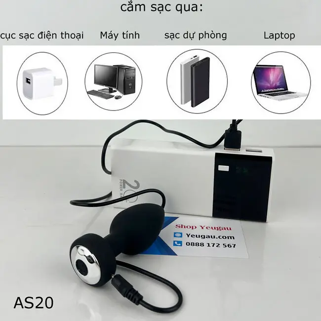 Nút gắn hậu môn sử dụng nguồn điện là pin sạc cổng USB. Bạn có thể cắm sạc qua cục sạc điện thoại, sạc dự phòng, máy tính. Thời gian cắm điện khoảng 2 tiếng là đầy và có thể “vui vẻ” liên tục khoảng 1 đến 1,5 giờ mà không lo sập nguồn khi đang lên đỉnh.