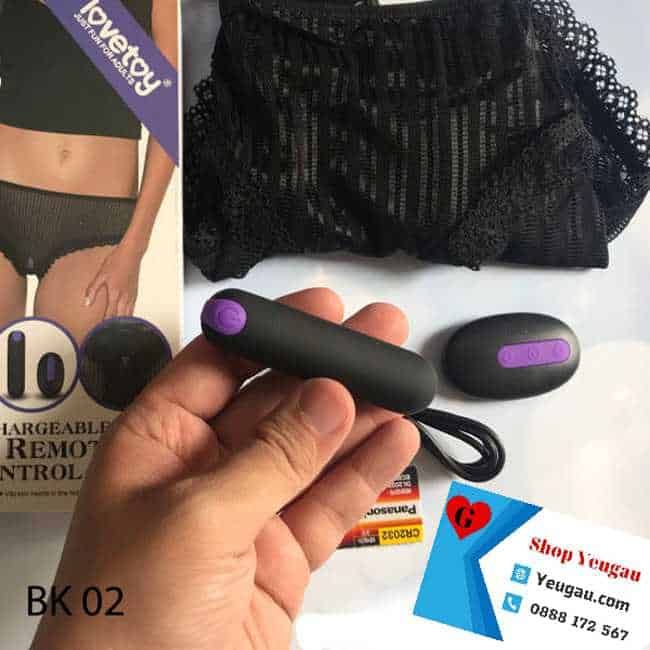 Bộ sex toy cho nữ này đi kèm một quần lót ren gợi cảm màu đen. Nó giúp tăng cảm giác thèm muốn chinh phục của đàn ông. Sản phẩm co giãn 4 chiều, free size. Người dưới 65kg đều mặc vừa. Cục rung có thể tháo rời và gắn vào đáy quần lót khác. Bạn có thể dùng cùng các quần chip mình yêu thích nhé.