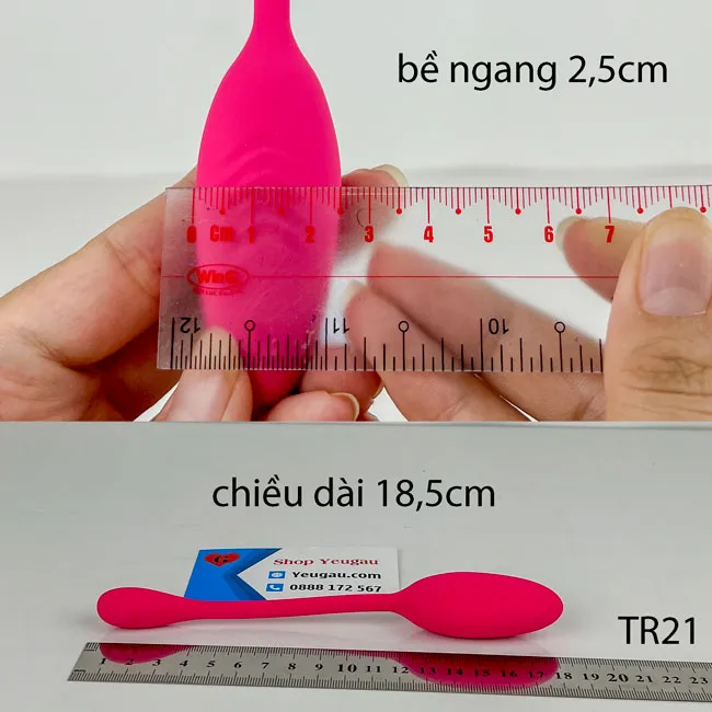 Mẫu trứng rung điều khiển từ xa này có chiều dài 18.5cm đường kính là 2,5cm. Với kích thước này các nàng tha hồ thủ dâm sâu trong âm đạo. Dù là người mới dùng cũng không lo làm rộng cô bé nhé.