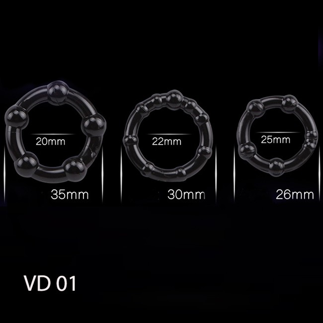 Chắc hẳn anh em phái mạnh không còn xa lạ gì với vòng bi dương vật. Nó là khắc tinh của chứng xuất tinh sớm, chưa đi đến chợ đã hết tiền. Sản phẩm gồm 3 vòng có kích thước khác nhau.