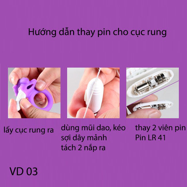 Cục rung dùng 2 viên pin LR 41. Bạn có thể mua ở siêu thị, cửa hàng văn phòng phẩm, trang thương mại điện tử. Thay pin dễ dàng với mũi dao hoặc kéo. Anh em dùng được nhiều lần, rất tiết kiệm chi phí.